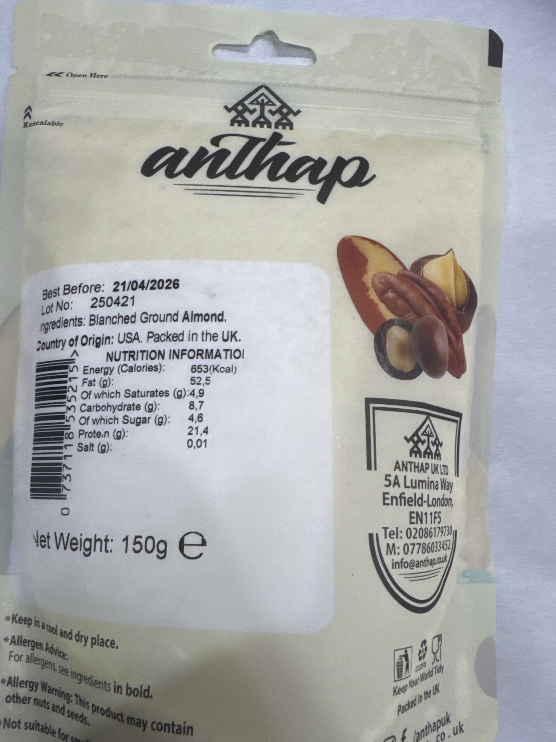 Blanched Almond Ground 150g